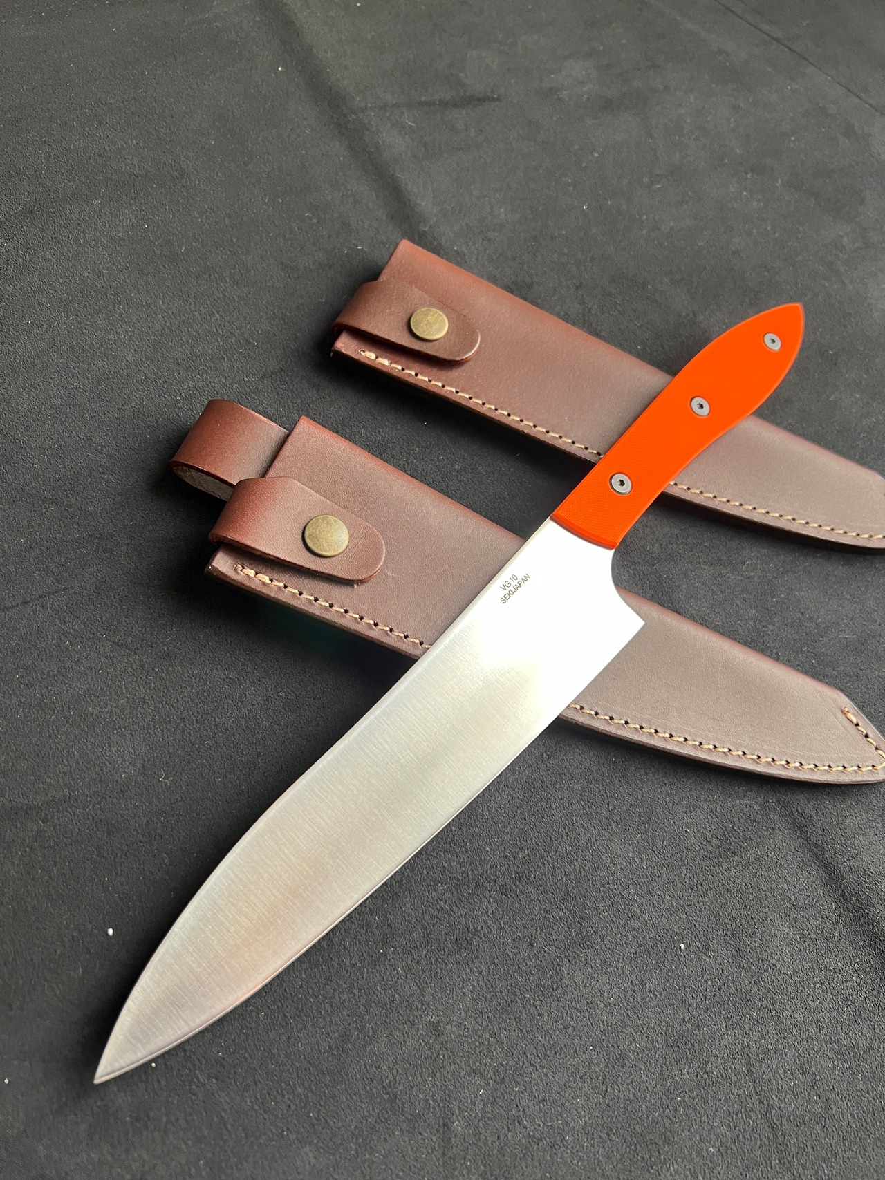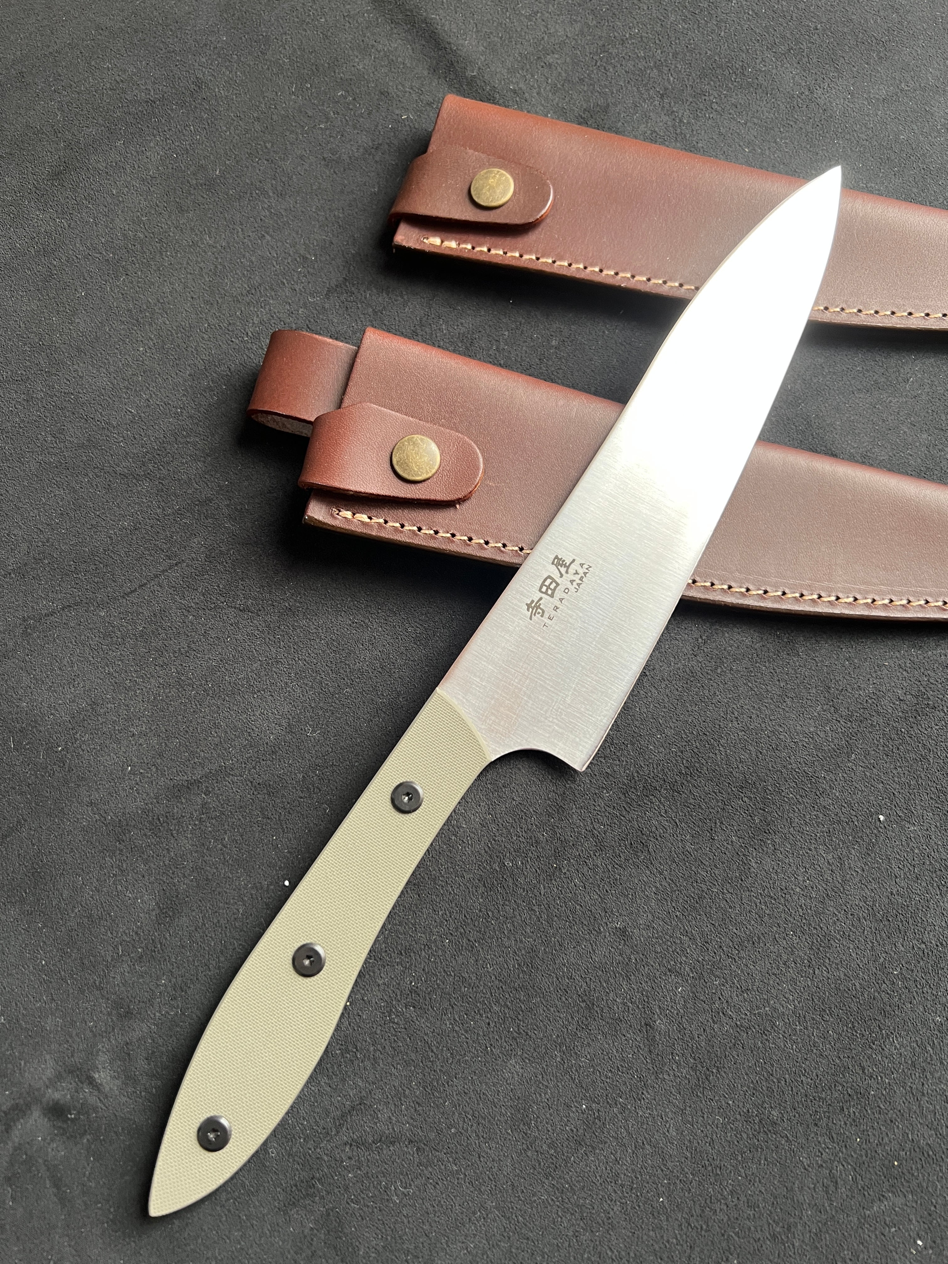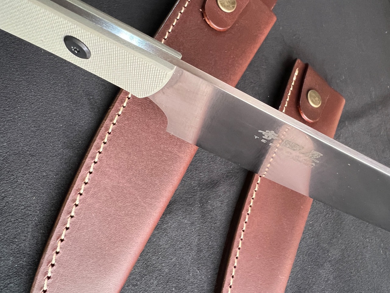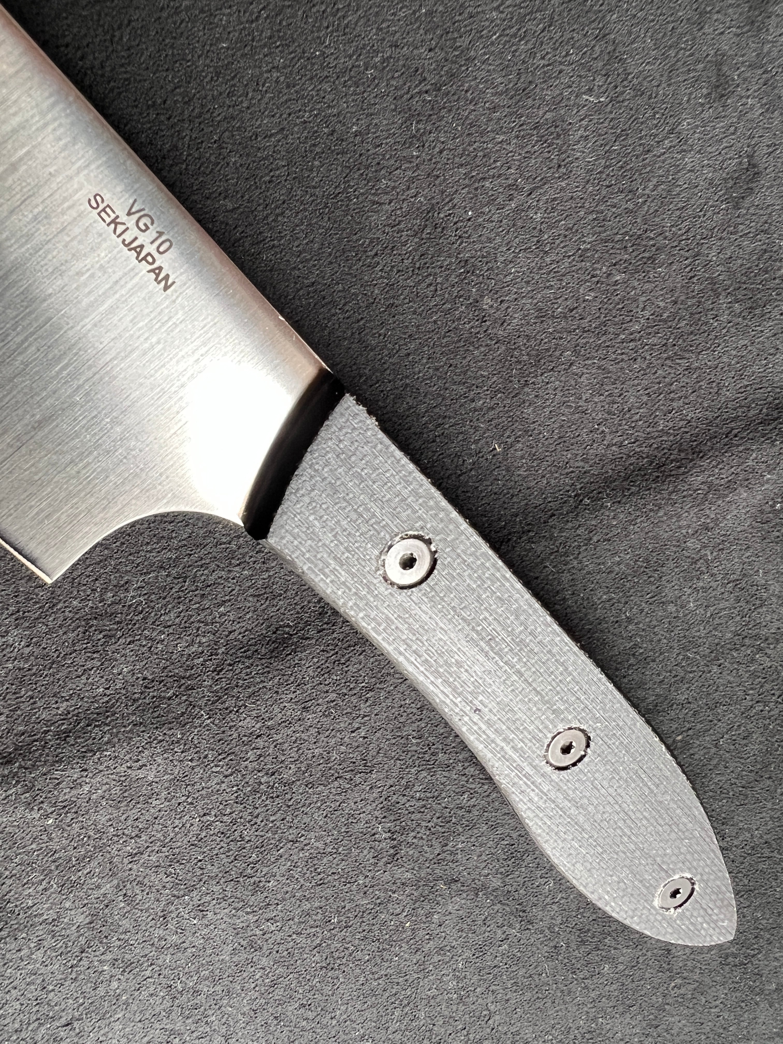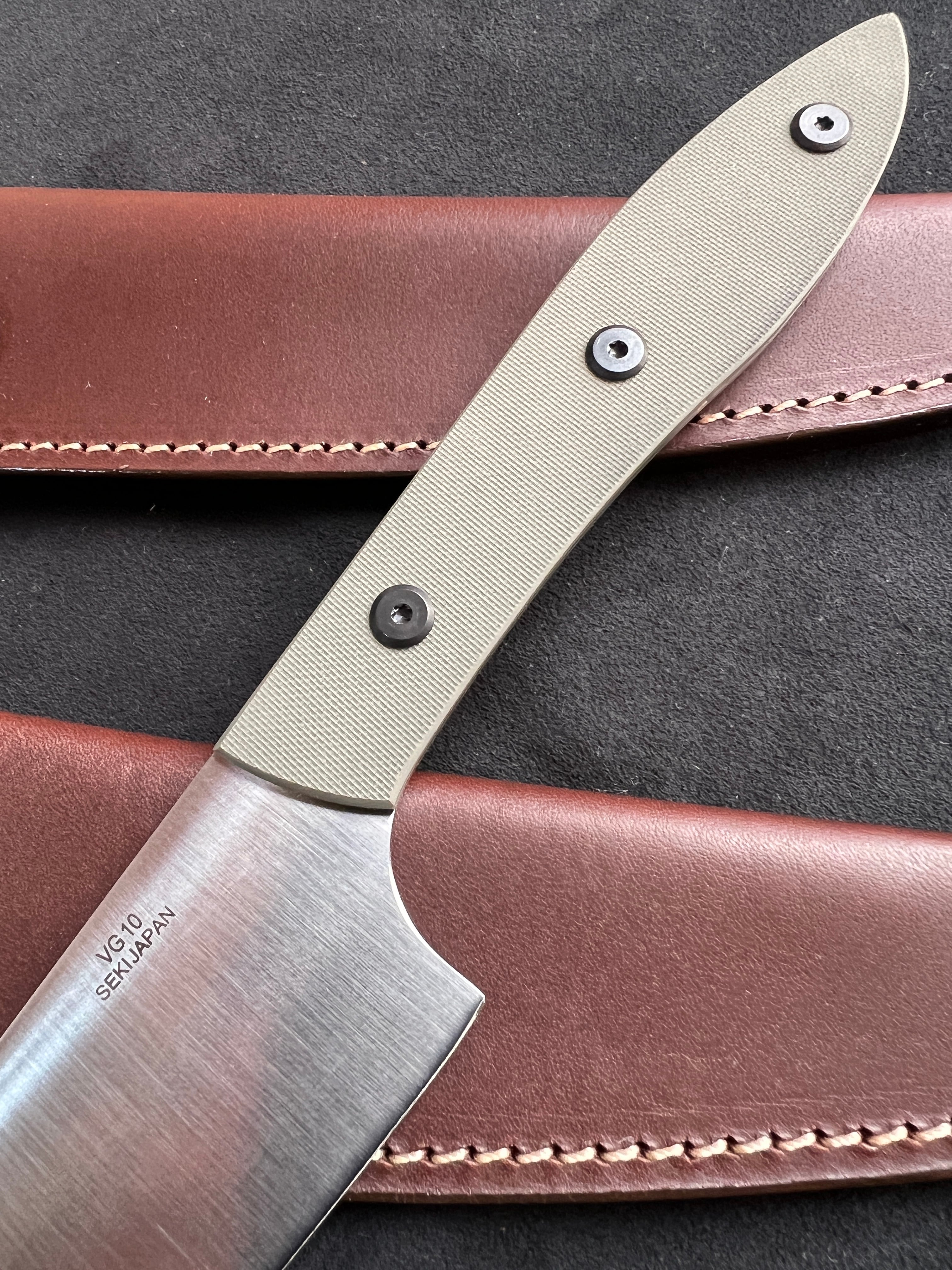 キャンプやバーベキューなどに、VG10の全鋼です、HRCは60〜61.G10ハンドルはU.S.A製